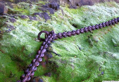 Poster - Chaine piquée par la rouille posée sur de la mousse (A0 - 118 cm x 84 cm).