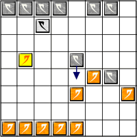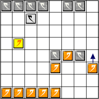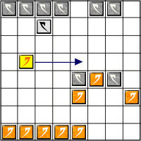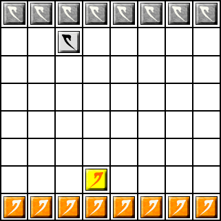 1 - Orange joue Cas 1 Orange déplace Dux de façon à encadrer Gris, ceci est un bon coup car non seulement il va pouvoir capturer un pion Gris mais il protège également son pion qui était encadré en rendant Gris inoffensif (ce pion n'est donc plus gelé, il pourrait se déplacer ou tour prochain. |