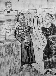 Voyant un jour la reine entrer dans la grande salle de palais, belle et bien parée, mais avec une feuille de saule dans les cheveux, il retira la feuille en éclatant de rire. La reine comprit qu'il avait percé le secret de ses rencontres au bord de la rivière avec un bel écuyer. Craignant qu'il ne révèle son secret au roi son époux, elle résolut de prouver à tous que le devin n'était qu'un imposteur.