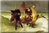 A ces mots, il s'élance en selle, en retenant la princesse, qui tente d'échapper à ses étreintes paternelle. Puis les chevaux emportant le moine, le roi et sa fille, fuient, avec les ailes de l'épouvante, les ondes plus rapides encore. Et les flots, poussés par un vent lugubre, roulaient au loin sur les grèves immenses.